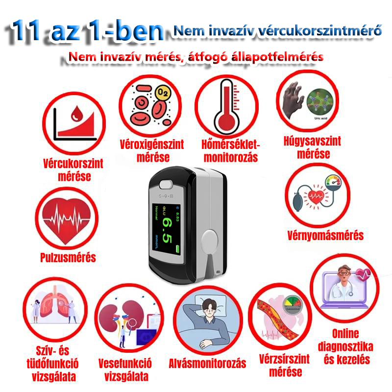 Top1 non-invazív vércukorszint+nem invazív véroxigén+Nem invazív húgysav+nem invazív pulzusszám+nem invazív vérnyomás